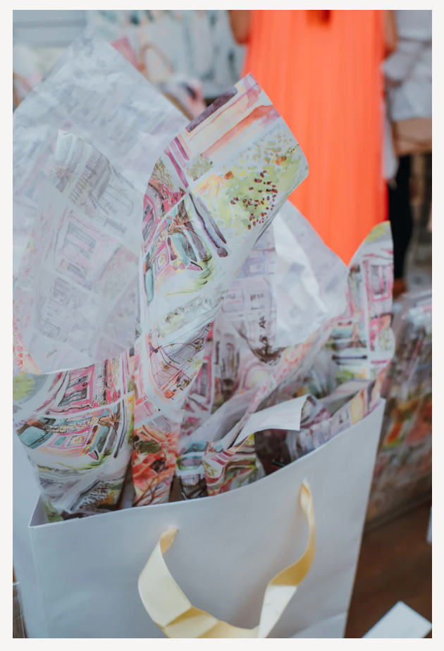 items purchased will be wrapped in our own gift wrap or tissue paper, tied with a ribbon and include a gift tag addressed to recipient