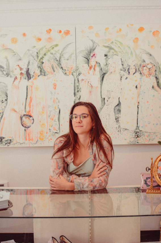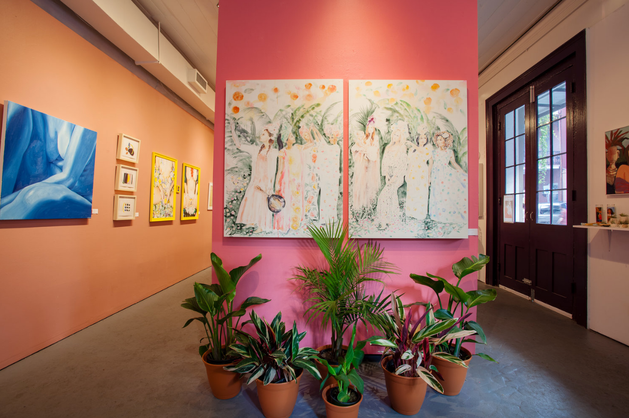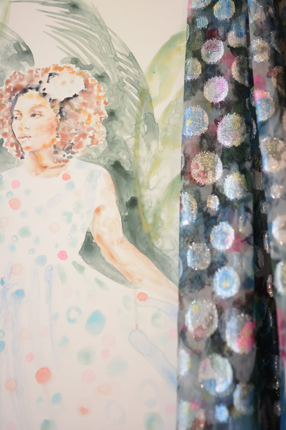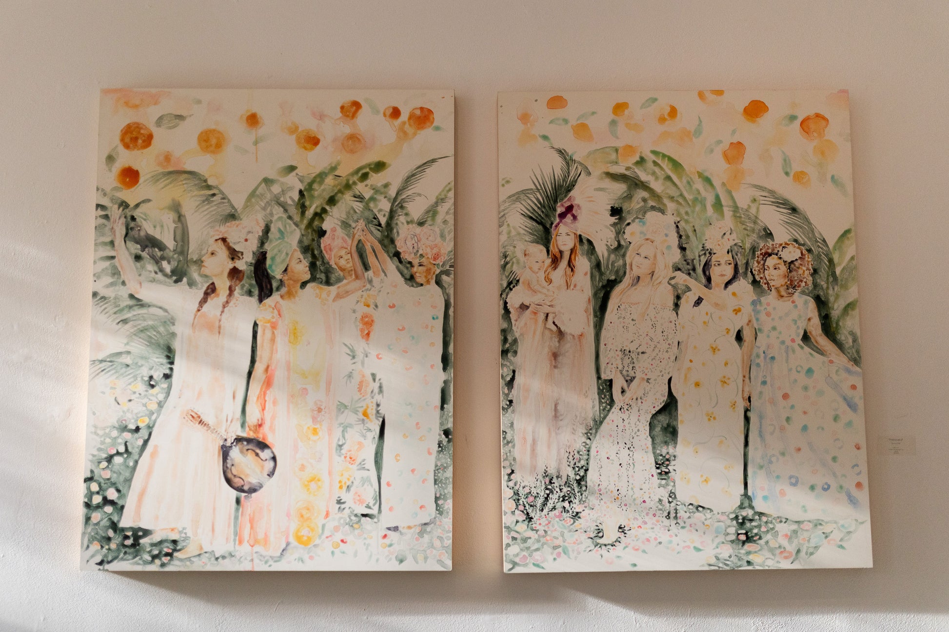 “Conceived as a part of Femaissance: Primavera in collaboration with Femaissance co-creator and curator Madeline Rose and photographer Kelsey Campion, and inspired by Botticelli’s Primavera and the muse-worthy women of New Orleans, this original watercolor diptych by Lyla Clayre is an homage to the flourishing of female creativity and community.”