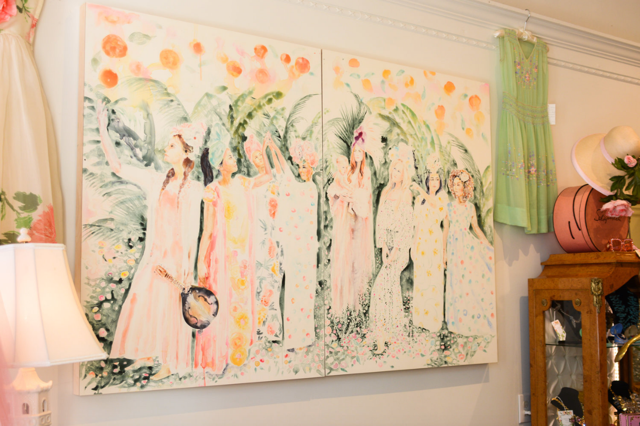Artist Lyla Clayre reimagined Botticelli's masterpiece with real New Orleans women, prominent in their own spheres and styled with vintage garments from local boutique Century Girl. The moment was captured and used as reference for this large scale watercolor diptych.