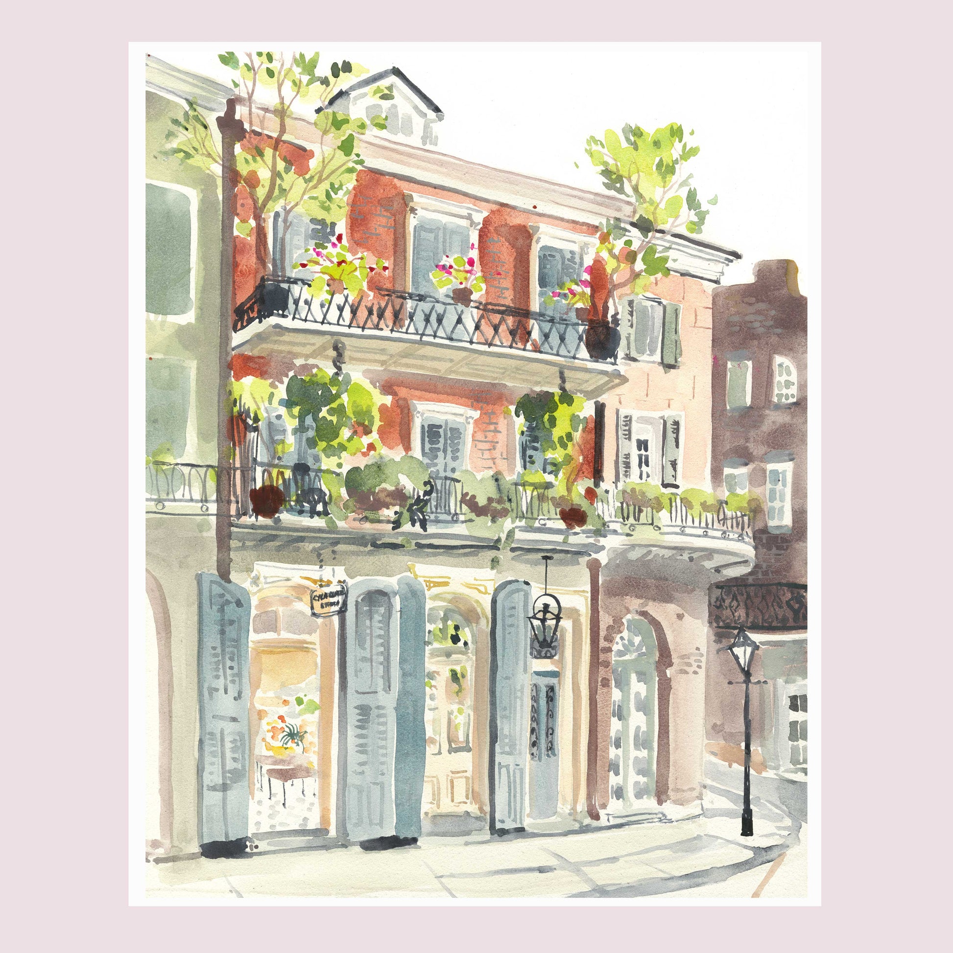painted on location in the French Quarter at Lyla Clayre Studio's first studio at 824 Chartres Street