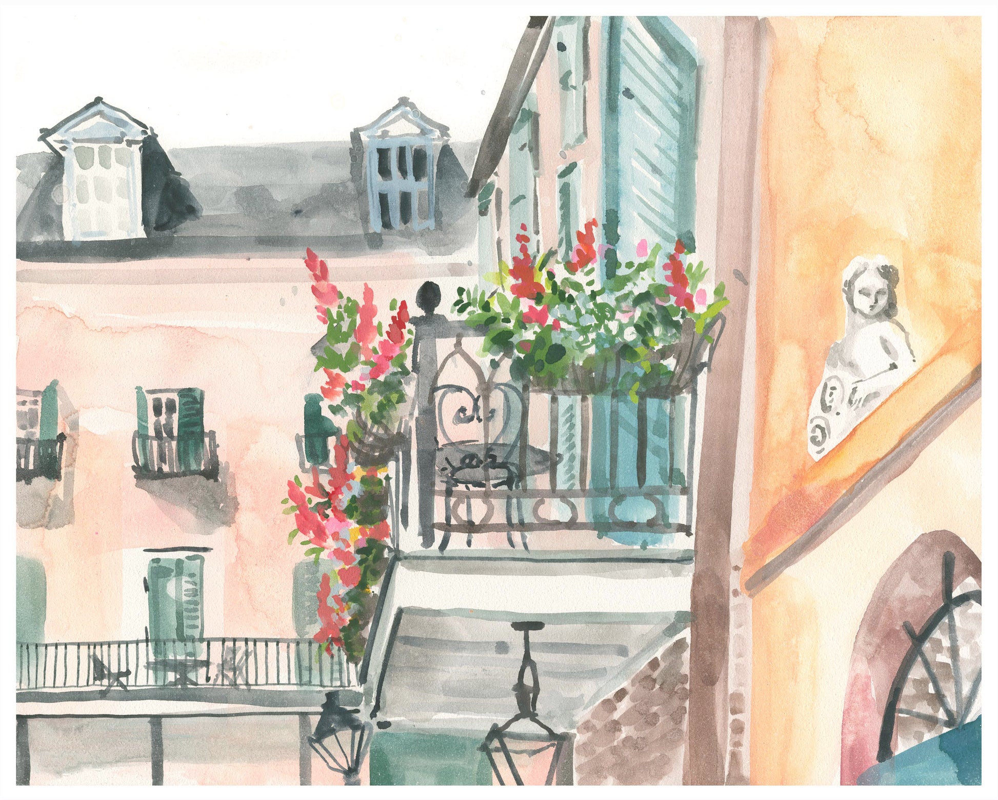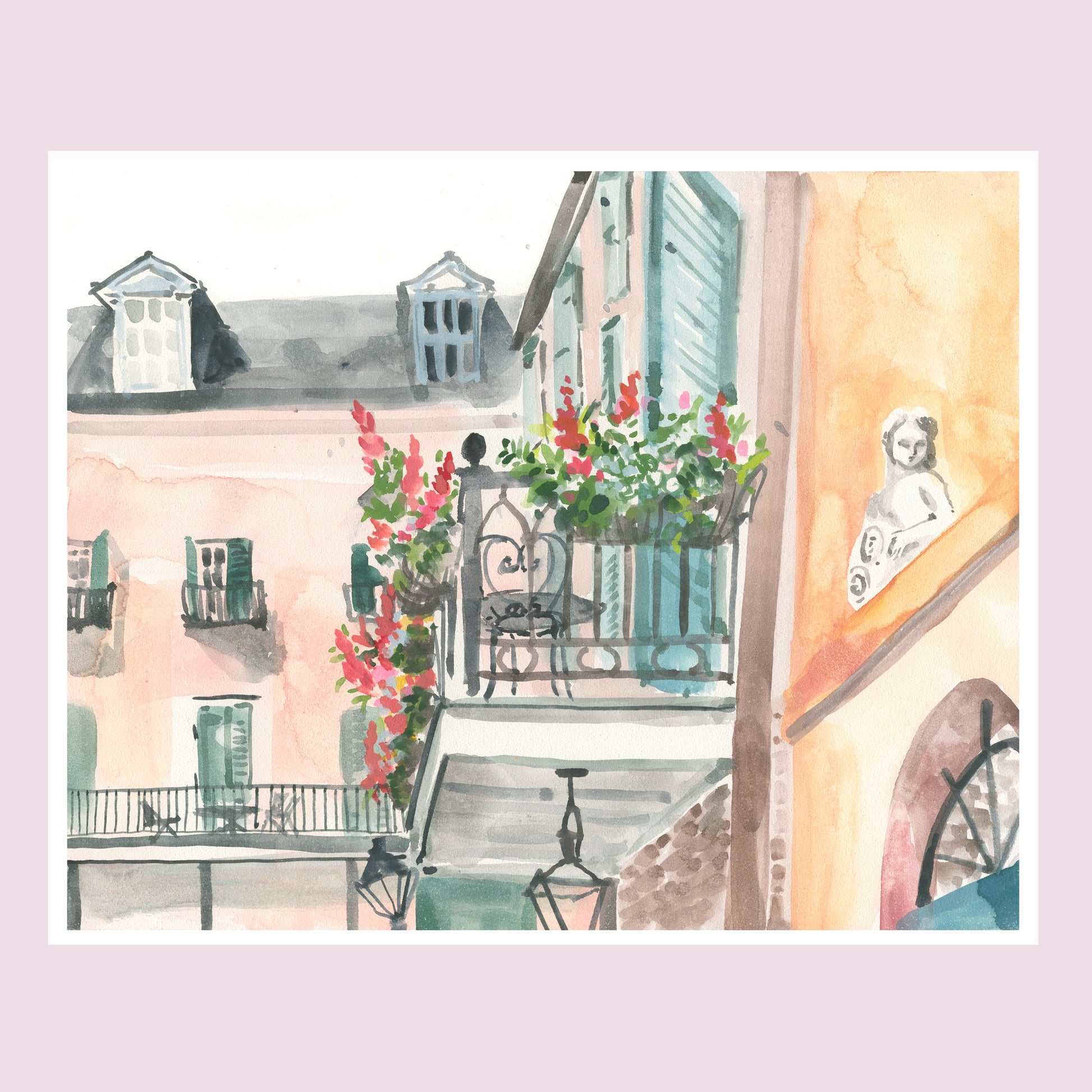 watercolor painting created on Madison Street facing towards Lyla Clayre Studio on Chartres Street